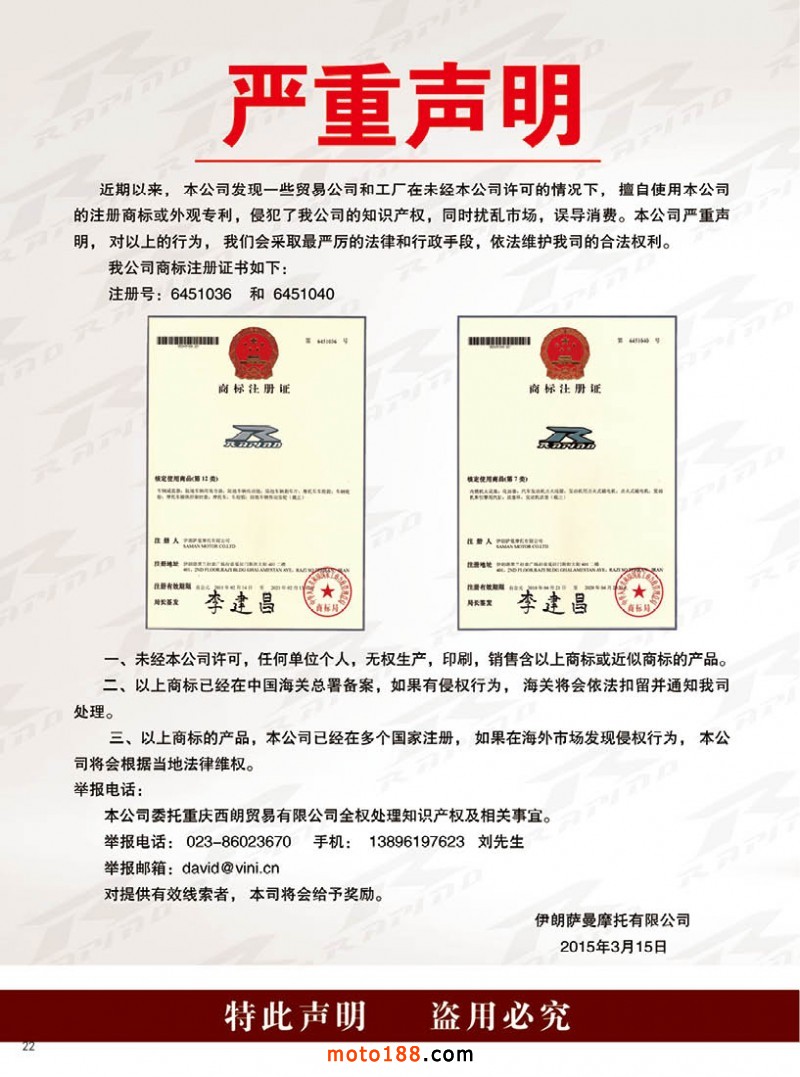 今年第四期雜志雖然在全國市場都有發行,一些不在市場的地區商戶除了通過www.moto188.com網站閱讀,也可到我們展位直接領取。由于本期雜志需要宣傳的企業較多,原來的摩托車及電動車行業的資訊的內容,順延到下一期發布。