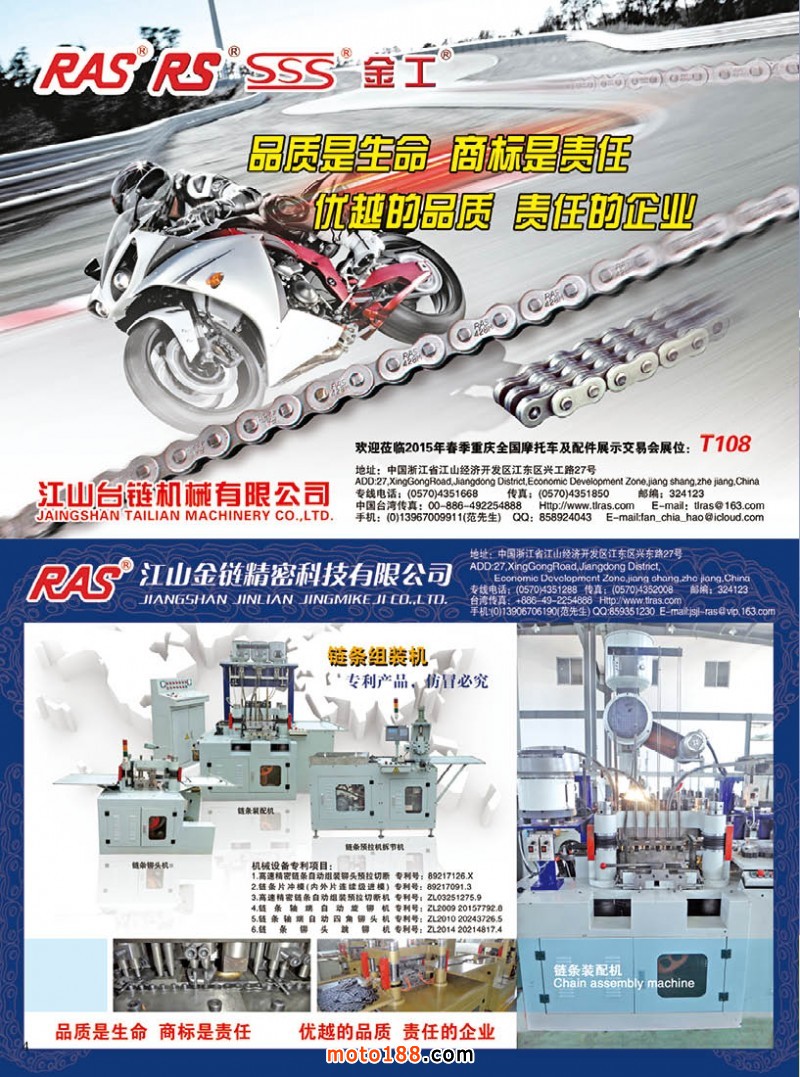 2015年的春天姍姍來遲,行業的盛會卻已盛裝已待。今春我們聚集在中國也是世界最大的摩托車配件生產基地重慶。目前行業形勢一如國家的經濟形勢依然嚴峻,但是我們摩配行業的從業人員,頂住困難以堅韌不拔的毅力,不離不棄奮斗在這個行業,通過重慶這樣一個大的展示平臺展示我們行業的精氣神。我們也帶來了這半年的勞動成果,和大家分享。