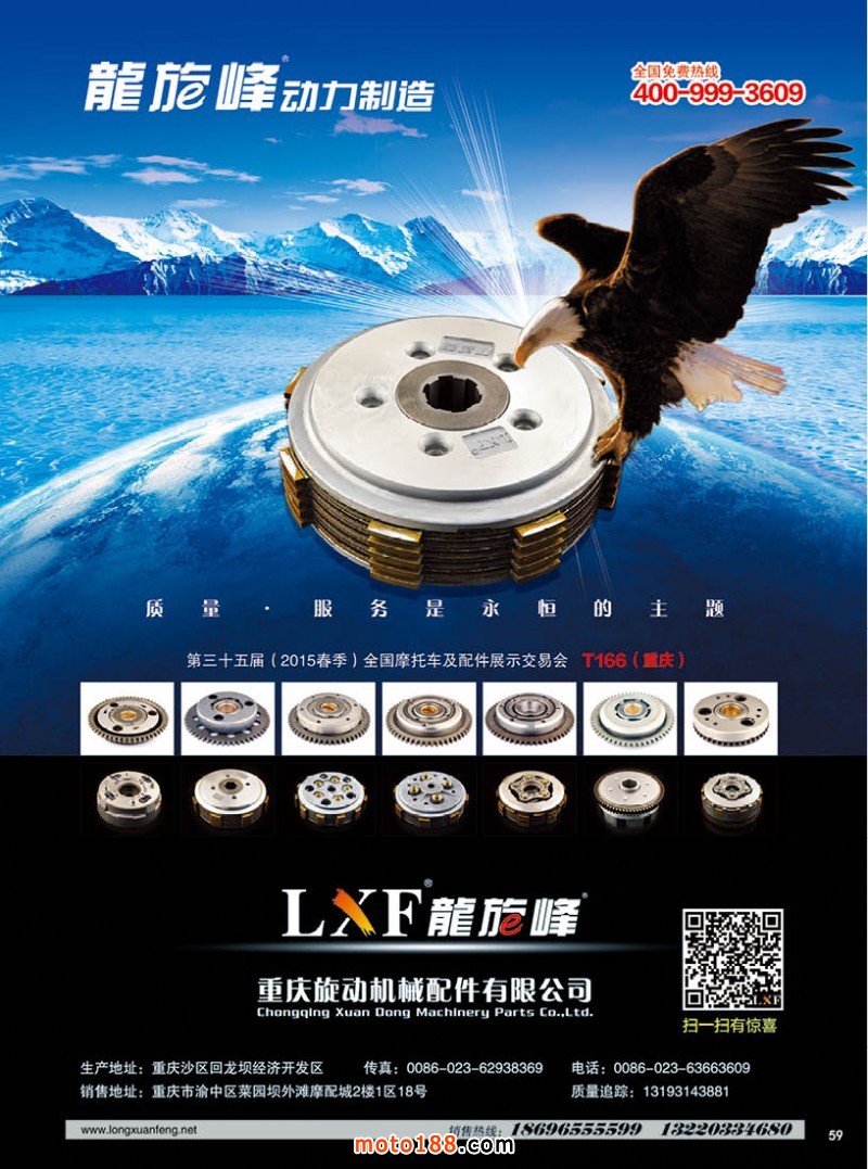 2015年的春天姍姍來遲,行業的盛會卻已盛裝已待。今春我們聚集在中國也是世界最大的摩托車配件生產基地重慶。目前行業形勢一如國家的經濟形勢依然嚴峻,但是我們摩配行業的從業人員,頂住困難以堅韌不拔的毅力,不離不棄奮斗在這個行業,通過重慶這樣一個大的展示平臺展示我們行業的精氣神。我們也帶來了這半年的勞動成果,和大家分享。