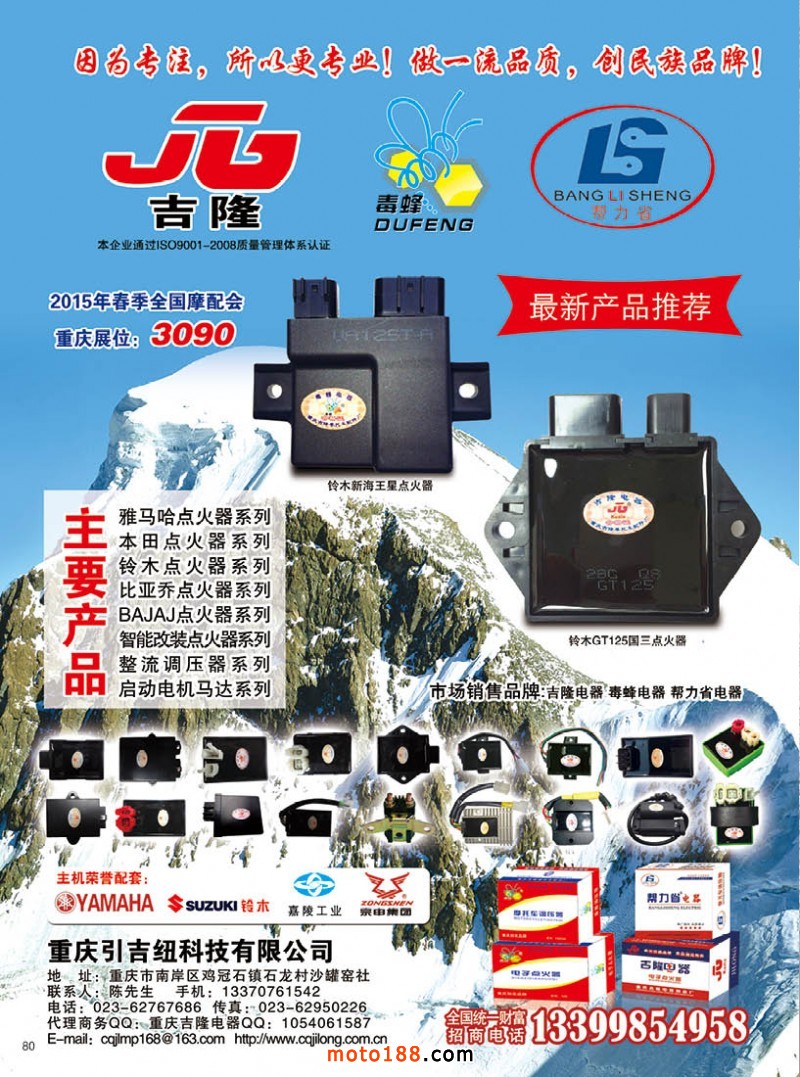 2015年的春天姍姍來遲,行業的盛會卻已盛裝已待。今春我們聚集在中國也是世界最大的摩托車配件生產基地重慶。目前行業形勢一如國家的經濟形勢依然嚴峻,但是我們摩配行業的從業人員,頂住困難以堅韌不拔的毅力,不離不棄奮斗在這個行業,通過重慶這樣一個大的展示平臺展示我們行業的精氣神。我們也帶來了這半年的勞動成果,和大家分享。