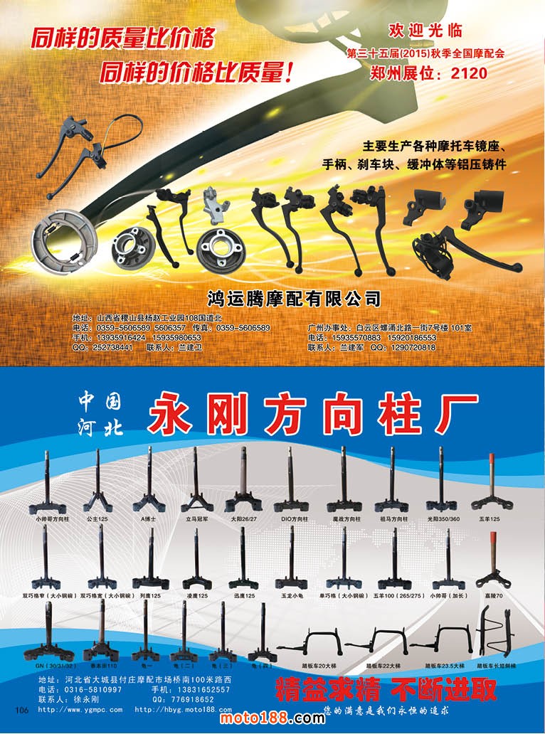 目前《中南地區市場指南》工作進展正常,通過對這些市場的深入走訪,我們發現了一些問題,也解決了部分問題,這是我們編書之外得到了新的收獲。工作雖然辛苦,但意義重大,因而雖苦尤甜,秋季鄭州全摩會我們展位在2110,歡迎領取《中南地區市場指南》及其它雜志和書。