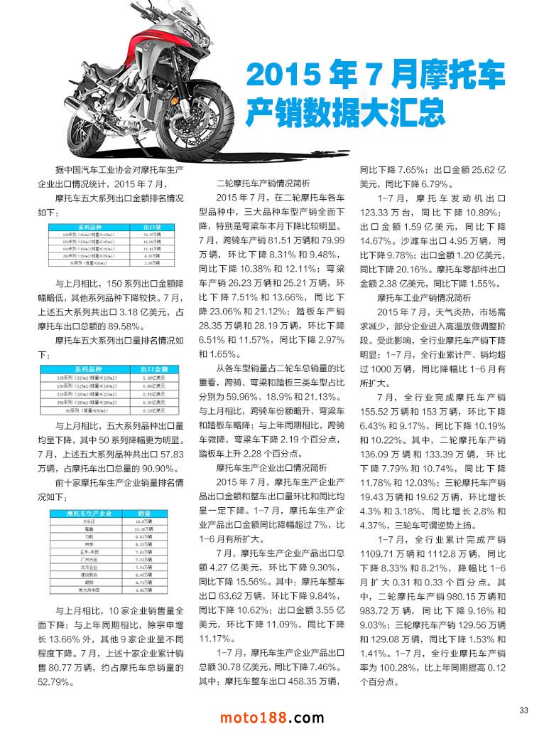 內(nèi)33 2015年7月摩托車產(chǎn)銷數(shù)據(jù)大匯總