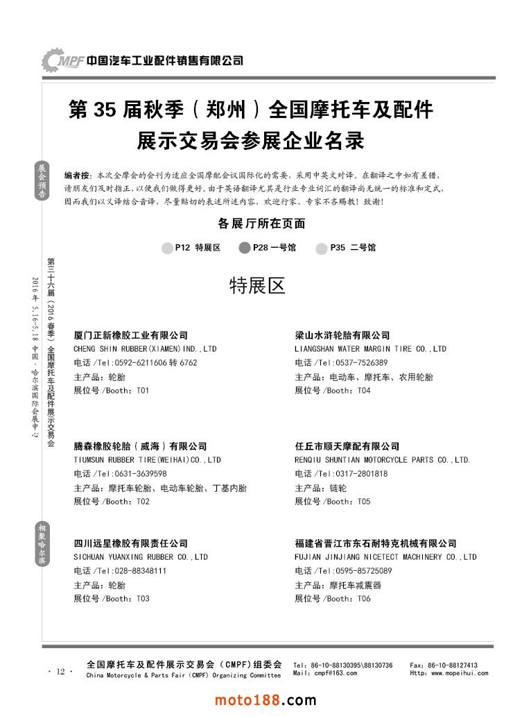 12 第35屆秋季(鄭州)全國摩托車及配件展示交易會參展企業名錄