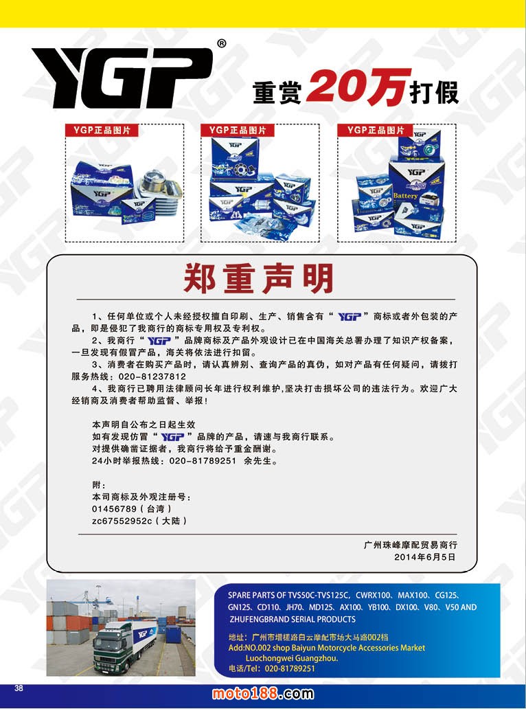 新升級的《中國摩托車配件市場指南?中南版》在會上首發(fā)。這次中南版是在11年版本基礎(chǔ)上的升級版,4年來市場變化較大,有一些市場已經(jīng)不復(fù)存在,不少的商戶已經(jīng)轉(zhuǎn)行,市場多了一些電動車配件的經(jīng)銷商,這也是由市場的變化而形成的自然變化。