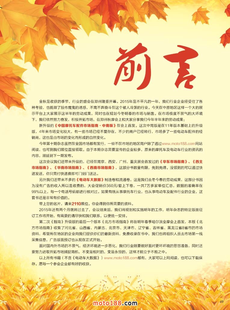 今年第十期雜志雖然在全國市場都有發行,一些不在市場的地區商戶除了通過m.bzjdz.cn網站閱讀,也可到我們展位直接領取。由于本期雜志需要宣傳的企業較多,原來的摩托車及電動車行業的資訊的內容,順延到下一期發布。