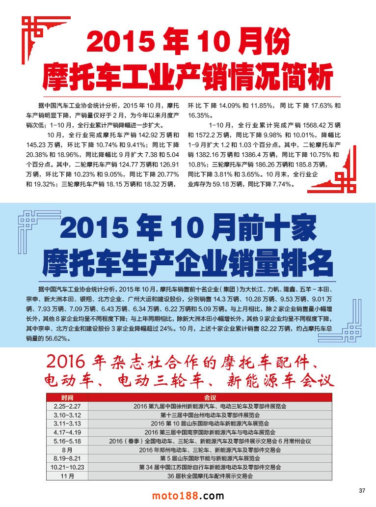 內37 2015年10月前十家摩托車生產企業銷量排名