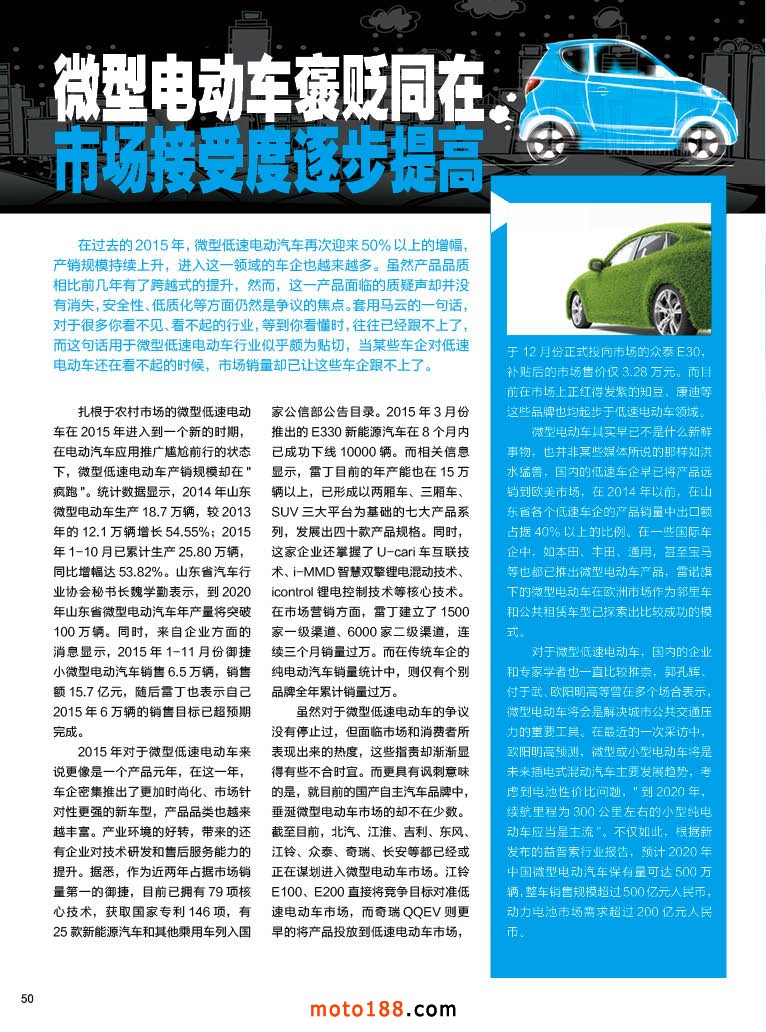 內50 微型電動車褒貶同在 市場接受度逐步提高