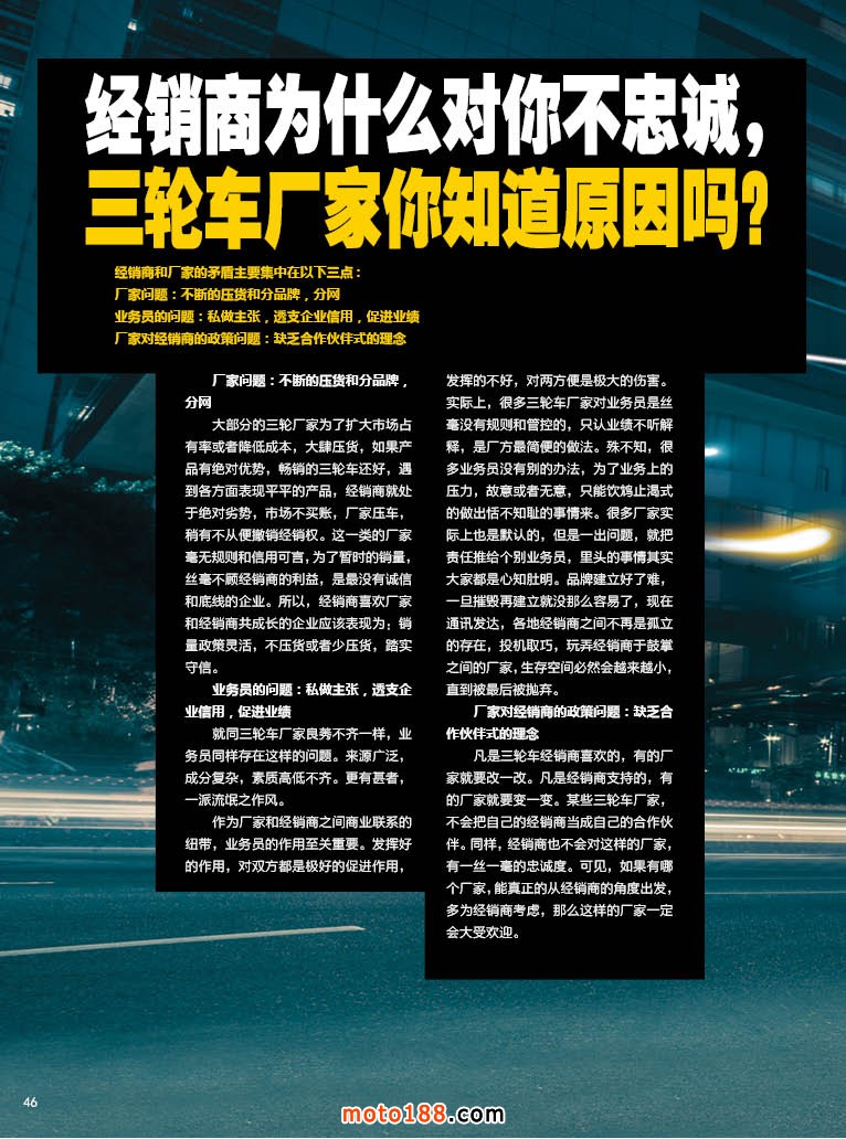 內46 經銷商為什么對你不忠誠,三輪車廠家你知道原因嗎?