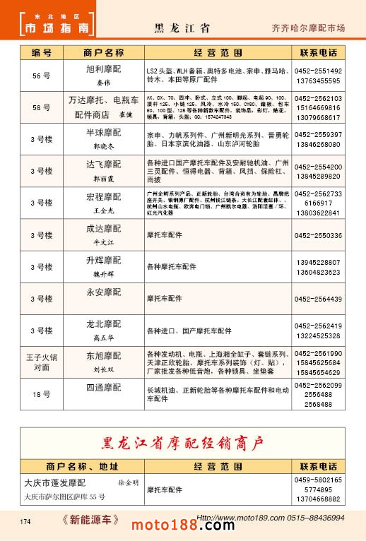 中國摩配市場從上世紀九十年代開始經過高速度的發展,正逐步減速,摩托車行業也漸呈式微,與之緊密相關的后市場的配件與維修也呈逐步下滑之勢,取代摩托車的在發達地區是汽車,欠發達地區是電動兩輪、電動三輪,甚至電動四輪車,隨著經濟的發展,出行的多樣化,也給了消費者多重的選擇。目前現有的摩托車及配件市場,也不再是以純摩托車為主體,有的市場電動車取代了摩托車,有的商店也是混合經營,這些變化在《市場指南》里面都有所反應。這次《北方指南》一些小市場不再單列,并入到相應的省份中去;以前去市場的公交線路,書中也不再列入,因為現在的地圖導航功能十分強大,既新又準。