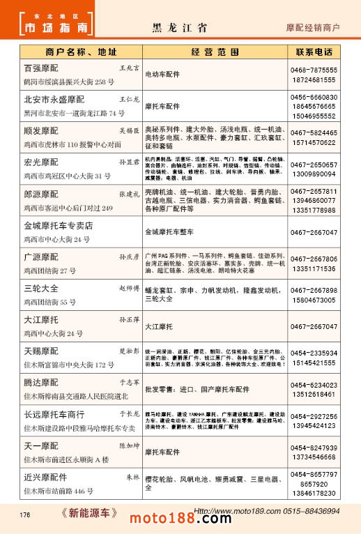 內176 黑龍江省摩配經銷商戶