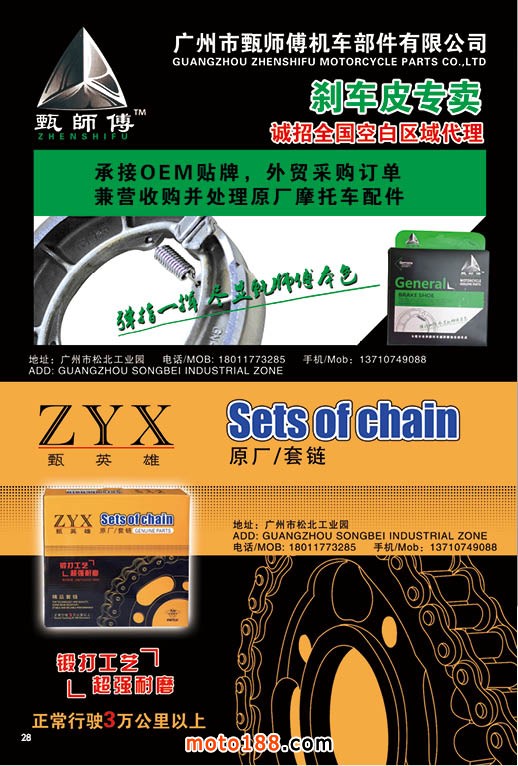 內28 廣州市甄師傅機車部件有限公司