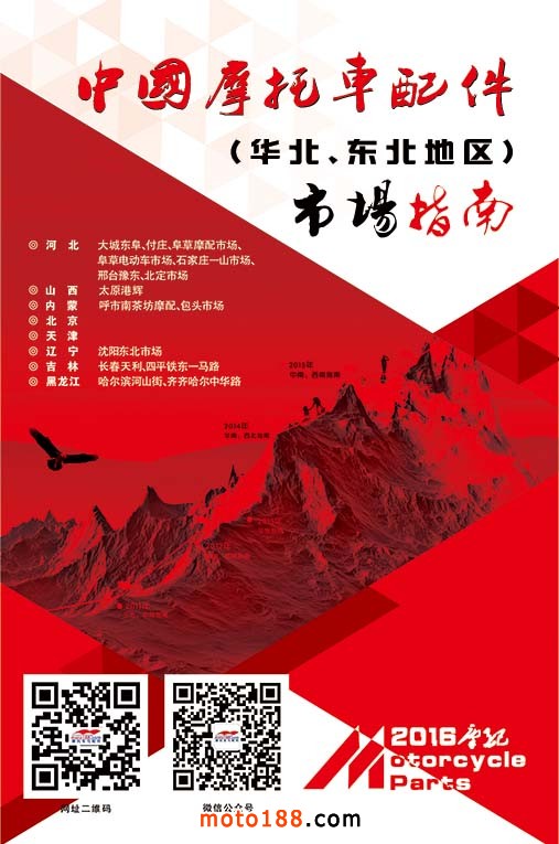 中國摩配市場從上世紀九十年代開始經過高速度的發展,正逐步減速,摩托車行業也漸呈式微,與之緊密相關的后市場的配件與維修也呈逐步下滑之勢,取代摩托車的在發達地區是汽車,欠發達地區是電動兩輪、電動三輪,甚至電動四輪車,隨著經濟的發展,出行的多樣化,也給了消費者多重的選擇。目前現有的摩托車及配件市場,也不再是以純摩托車為主體,有的市場電動車取代了摩托車,有的商店也是混合經營,這些變化在《市場指南》里面都有所反應。這次《北方指南》一些小市場不再單列,并入到相應的省份中去;以前去市場的公交線路,書中也不再列入,因為現在的地圖導航功能十分強大,既新又準。