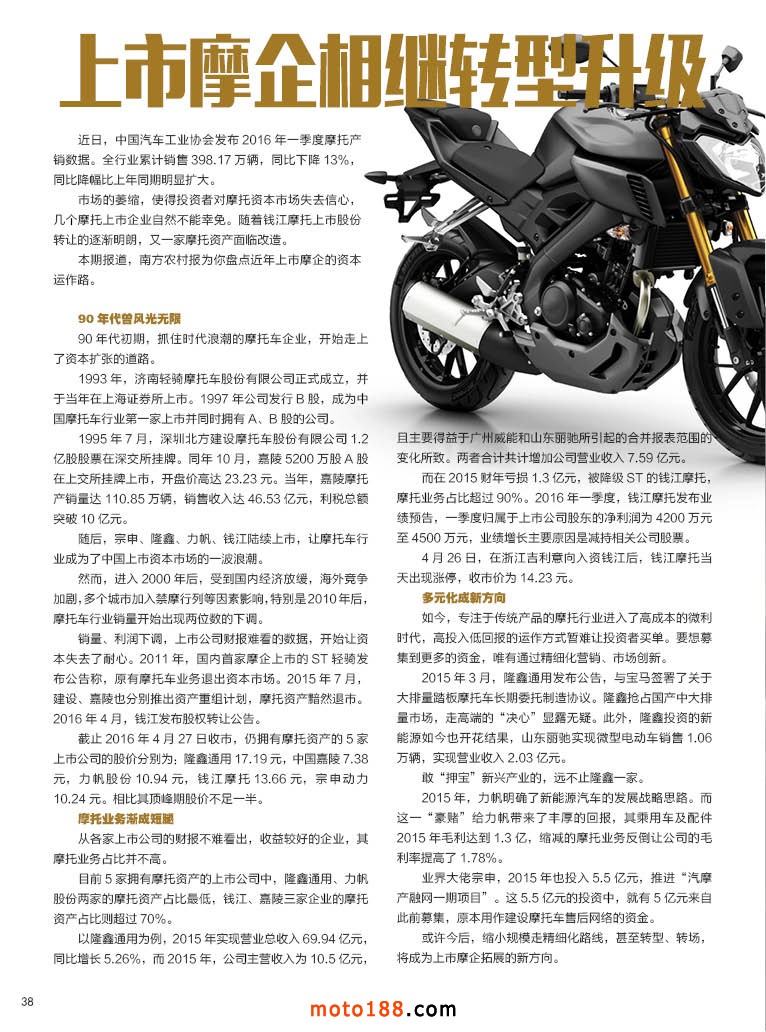 為了做好這個戰略性大調整,我們雜志對內將強化管理,嚴格核算,完善和執行現有的規章制度,運營逐步公開透明,外引內聯,與行業商會以及區域市場代表性企業,以及有特色的運作平臺進行廣泛合作,甚至用股份的形式進行股份制改制,努力做大做強行業這個唯一的宣傳平臺---《摩托車/電動車與配件》,下半年我們將逐步的實施我們計劃;在發行形式上也同樣要有新的突破,我們在下半年雜志里將分期陸續報道我們調整的行動路線,歡迎大家關注!