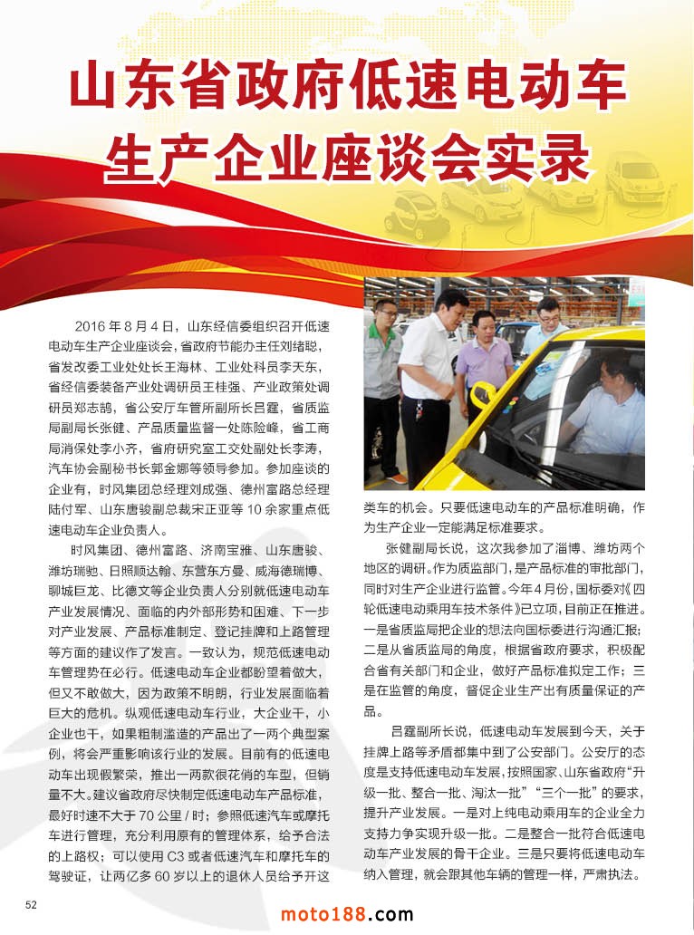 上的不明朗,不少地區市場已初步發育,但一直沒有明確的政策支持,廠家商家不敢大力度的投入,大部分消費者在猶豫觀望之中。一些技術含量高,靠拼裝的廠家,在市場的縫隙里求生存、打擦邊球,雖然有不斷冒出不被證實的利好,以及在三四線城市及農村市場的需求存在,但是這個行業可以概括地說,在猶豫觀望中發展,在希望中堅守。今年8月山東新一輪行業整頓開始,整頓之后市場何去何從,廠家何去何從?只有用時間來說話。