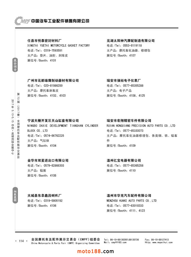 第36屆秋季(廣州)全國摩托車及配件展示交易會參展企業名錄