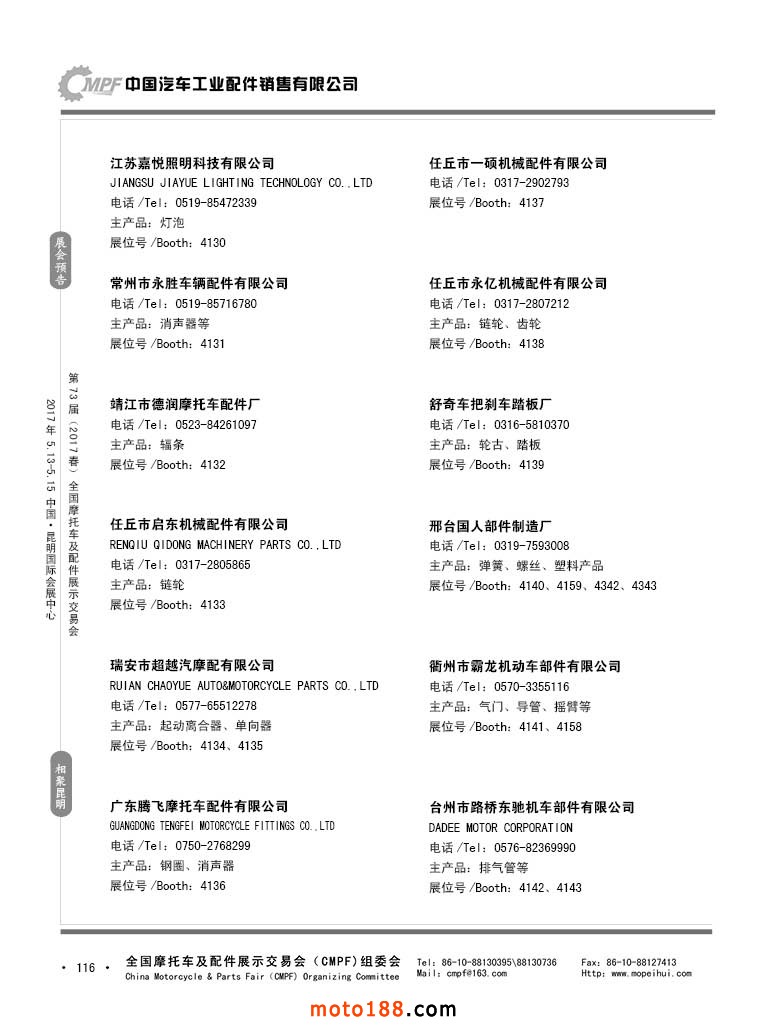 第36屆秋季(廣州)全國摩托車及配件展示交易會參展企業名錄
