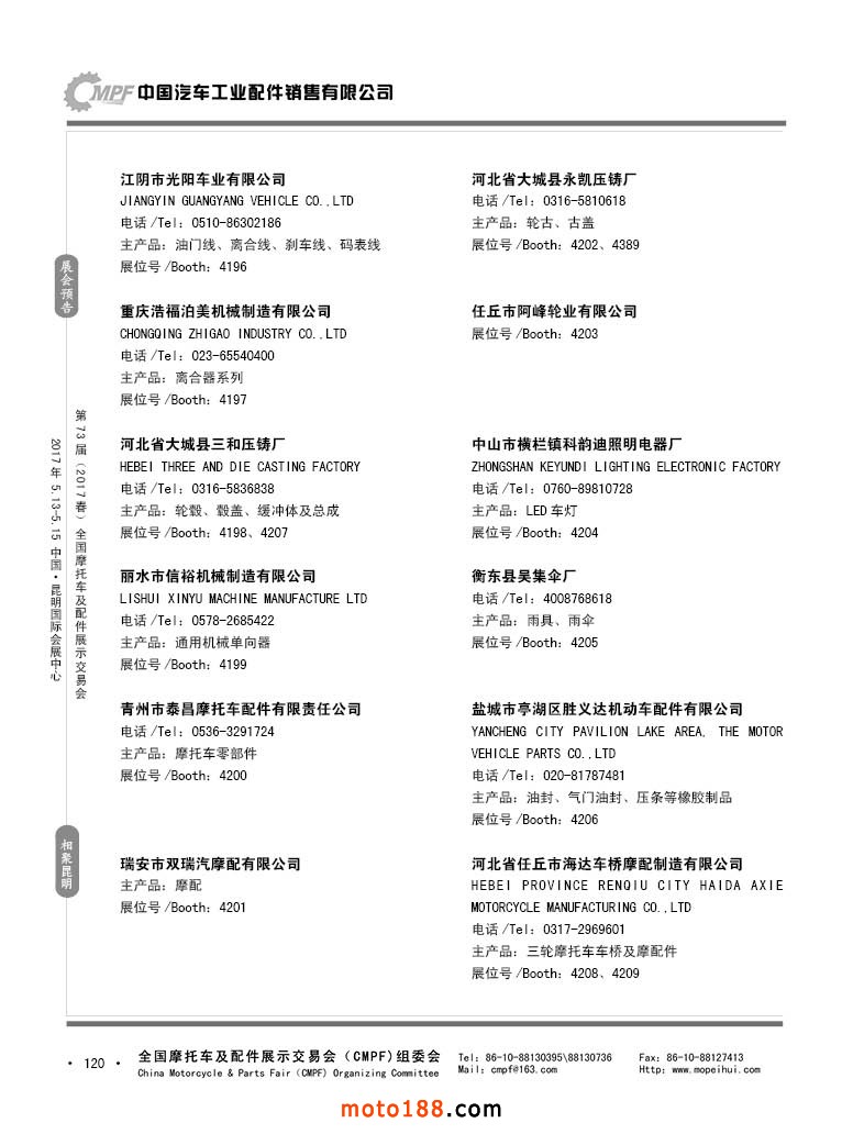 第36屆秋季(廣州)全國摩托車及配件展示交易會參展企業(yè)名錄