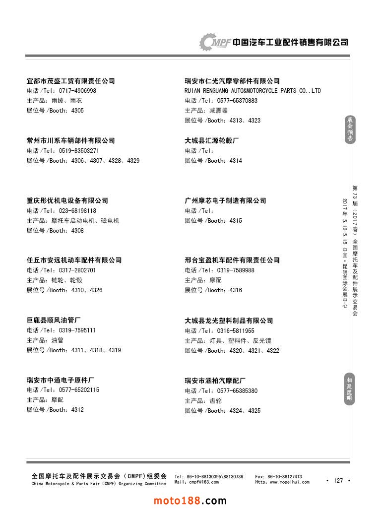 第36屆秋季(廣州)全國摩托車及配件展示交易會參展企業名錄