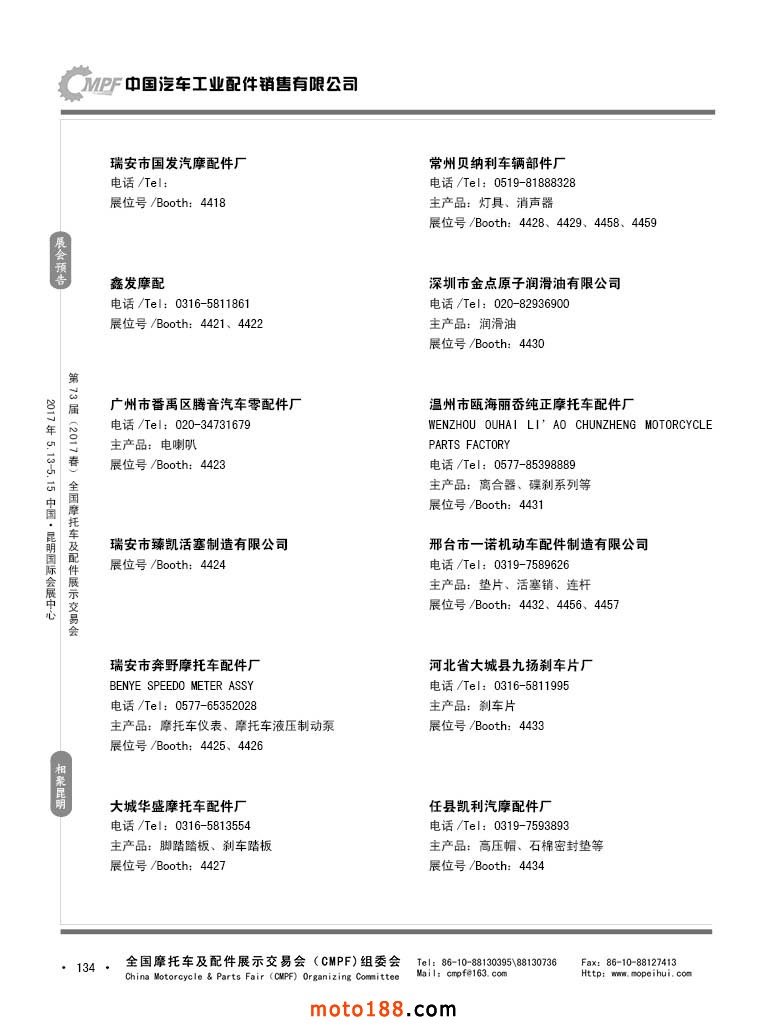 第36屆秋季(廣州)全國摩托車及配件展示交易會參展企業名錄