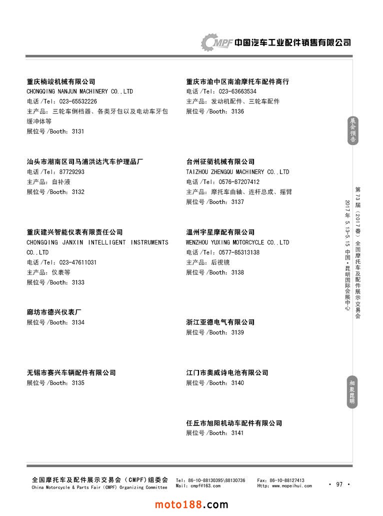 第36屆秋季(廣州)全國摩托車及配件展示交易會參展企業名錄