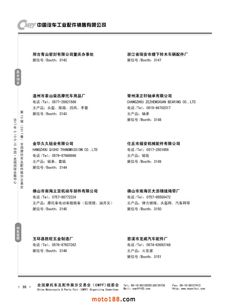 第36屆秋季(廣州)全國摩托車及配件展示交易會參展企業(yè)名錄