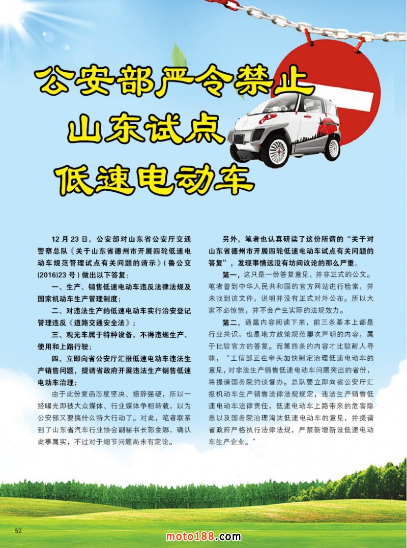 內52 公安部嚴令禁止山東試點低速電動車