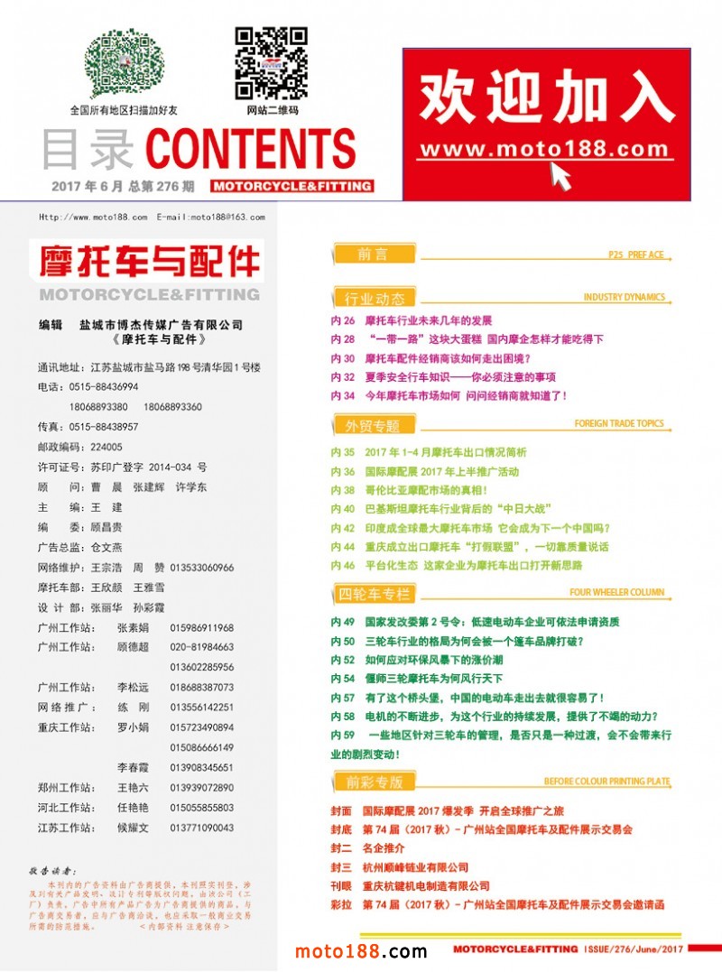 2017.6月《摩托車/電動車與配件》雜志,歡迎大家閱讀