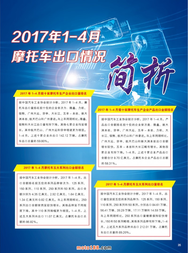 內35 2017年1-4月摩托車出口情況簡析