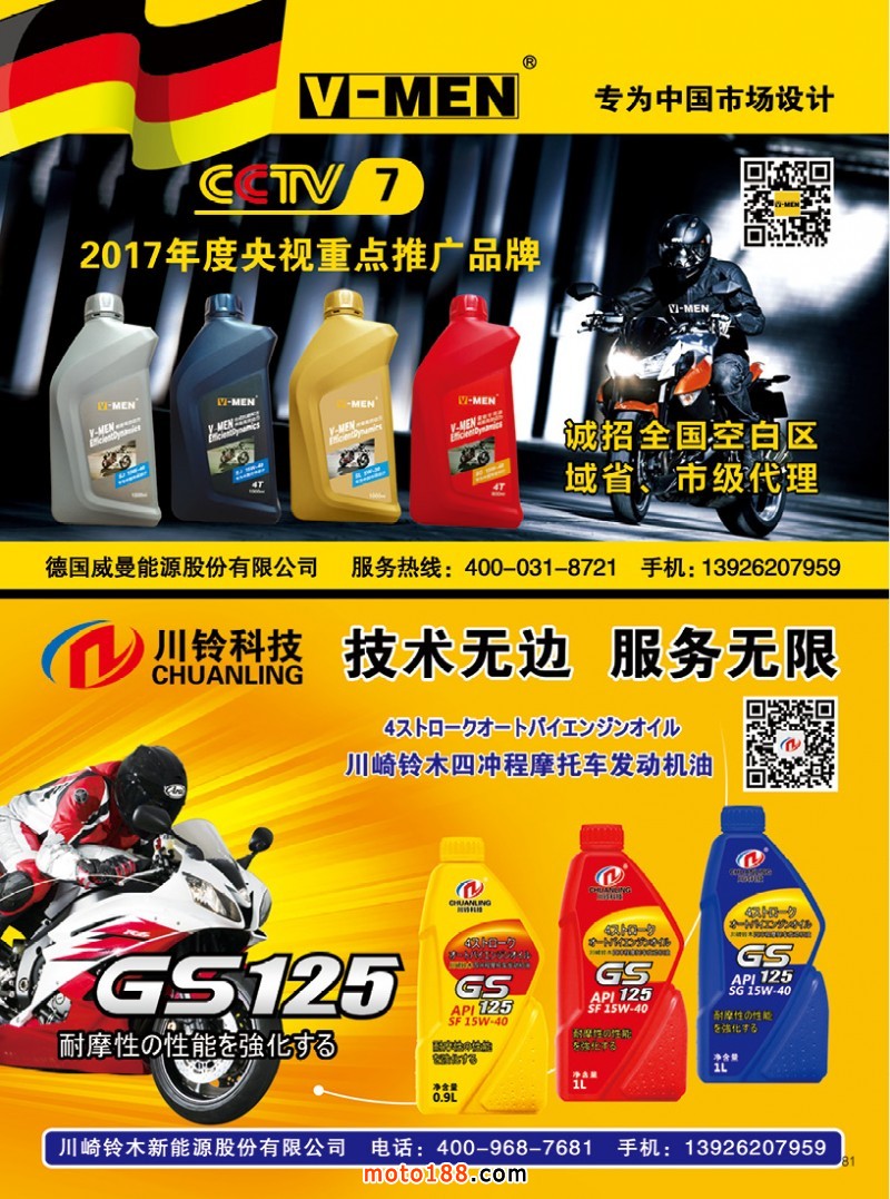 2017.6月《摩托車/電動車與配件》雜志,歡迎大家閱讀日期:2017-06-02 點擊:1317 查看原圖 全部展開![]() ![]() ![]() 內81 德國威曼能源股份有限公司