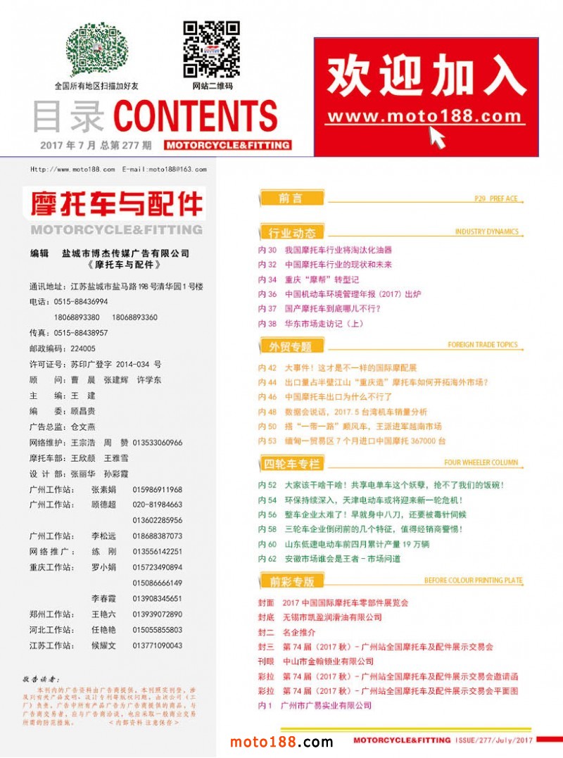 2017.7月《摩托車/電動車與配件》雜志,歡迎大家閱讀