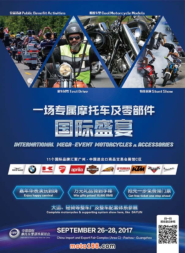 2017.8月《摩托車/電動(dòng)車與配件》雜志,歡迎大家閱讀日期:2017-07-31 點(diǎn)擊:2400 查看原圖 全部展開![]() ![]() ![]() 封底 中國國際摩托車零部件展覽會(huì)