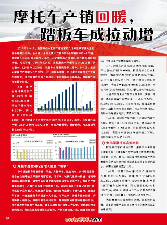 2017.8月《摩托車/電動車與配件》雜志,歡迎大家閱讀日期:2017-07-31 點擊:2400 查看原圖 全部展開![]() ![]() ![]() 內(nèi)28 摩托車產(chǎn)銷回暖,踏板車成拉動增長主“引擎”