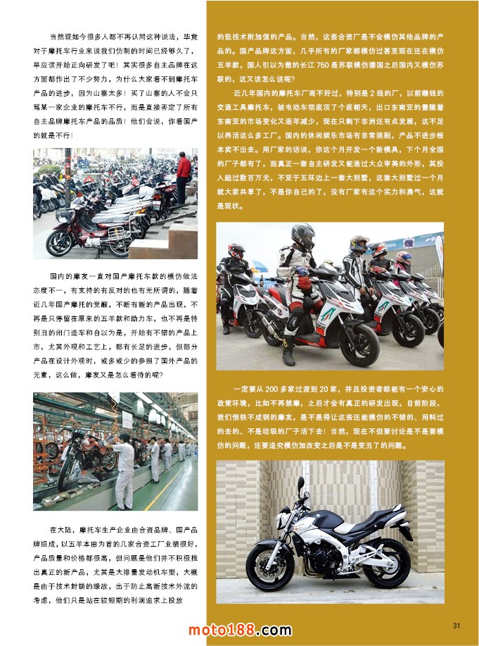 2017.8月《摩托車/電動車與配件》雜志,歡迎大家閱讀日期:2017-07-31 點(diǎn)擊:2400 查看原圖 全部展開![]() ![]() ![]() 內(nèi)31 山寨是國產(chǎn)摩托車的形象大使嗎?