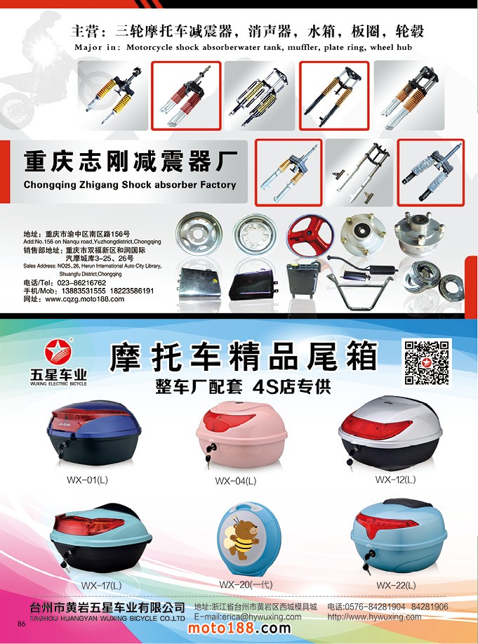 2017.8月《摩托車/電動車與配件》雜志,歡迎大家閱讀日期:2017-07-31 點擊:2400 查看原圖 全部展開![]() ![]() ![]() 內86 重慶志剛減震器廠
