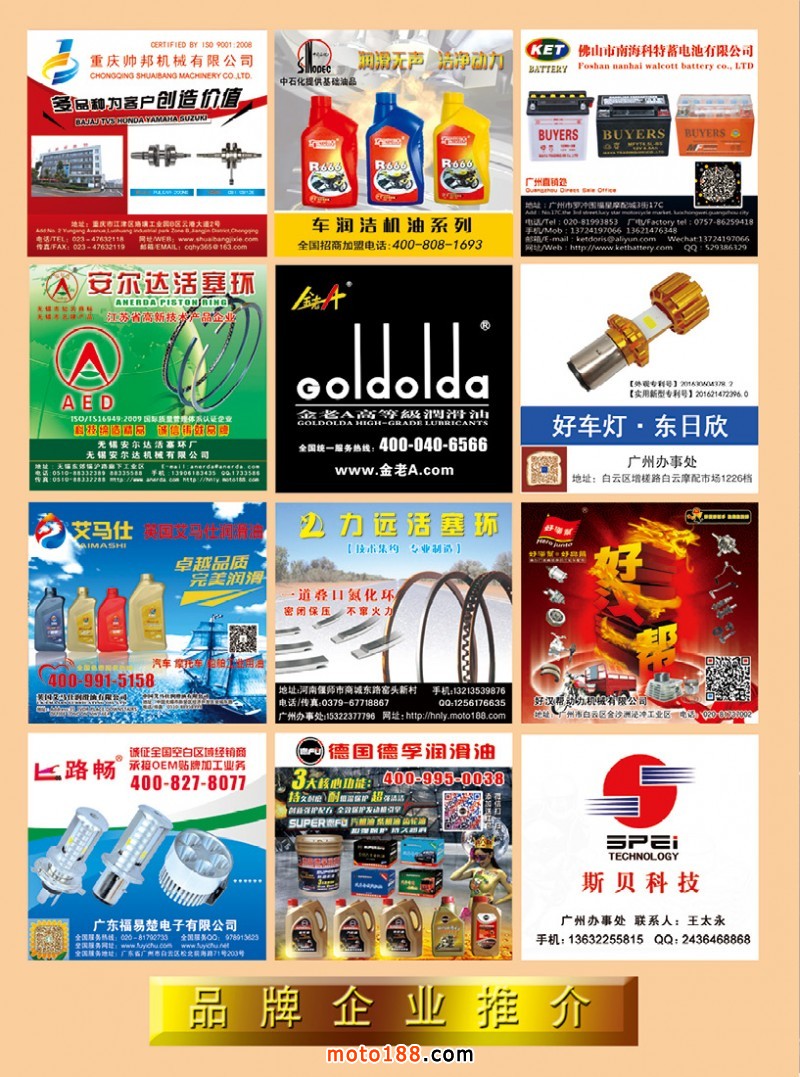 本期雜志出刊后,行業銷售季節也就開始,在今年不溫不火的摩配不景氣的狀況下,國內摩配市場輝煌已離我們而去,面對內銷雞肋般的市場,摩配的外貿出口也逐漸的失去國際市場的競爭力,取代而之的是印度摩托車,中國摩托車發展到今天有多種原因造成,不便一一而述。