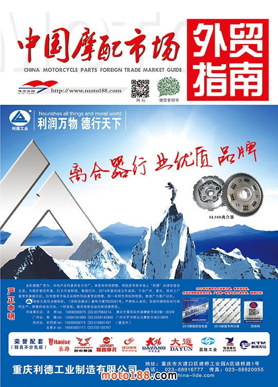 由《摩托車與配件》雜志社,在國內首次獨家推出的《中國摩托車配件外貿市場指南》工具書正式面世。這是一本專業定位于外貿企業的工具書,隨著一帶一路發展戰略的推進,更多企業走出國門,將產品銷往世界各地,本書收集了國內主要從事摩托車配件外貿的工廠、商家、國外部分駐華采購機構等資料匯總而成.