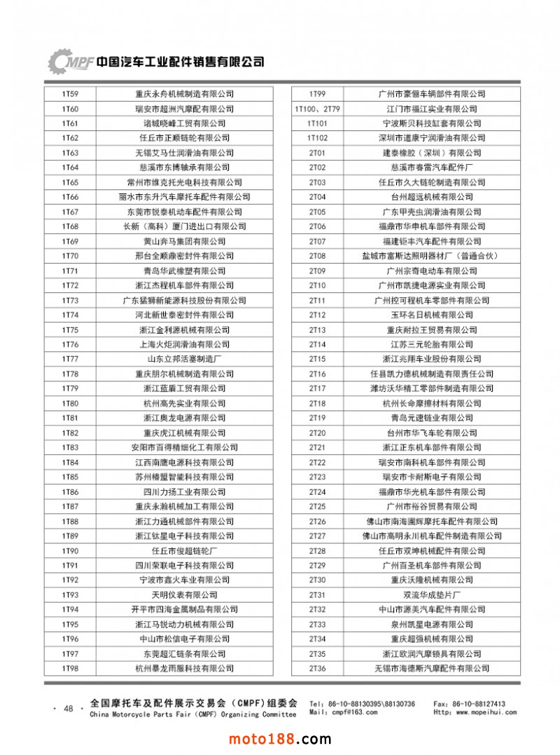 內48 第74屆(2017秋)全國摩托車及配件展示交易會-廣州站參展單位名錄