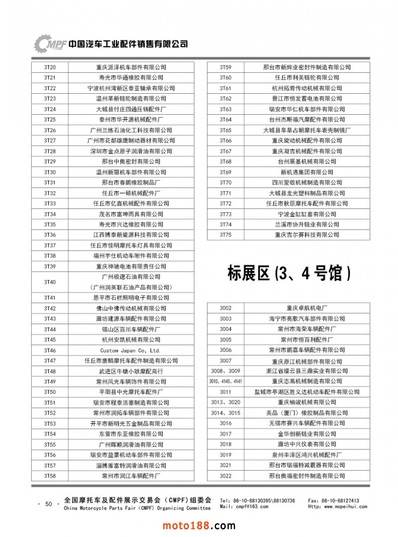 內50 第74屆(2017秋)全國摩托車及配件展示交易會-廣州站參展單位名錄