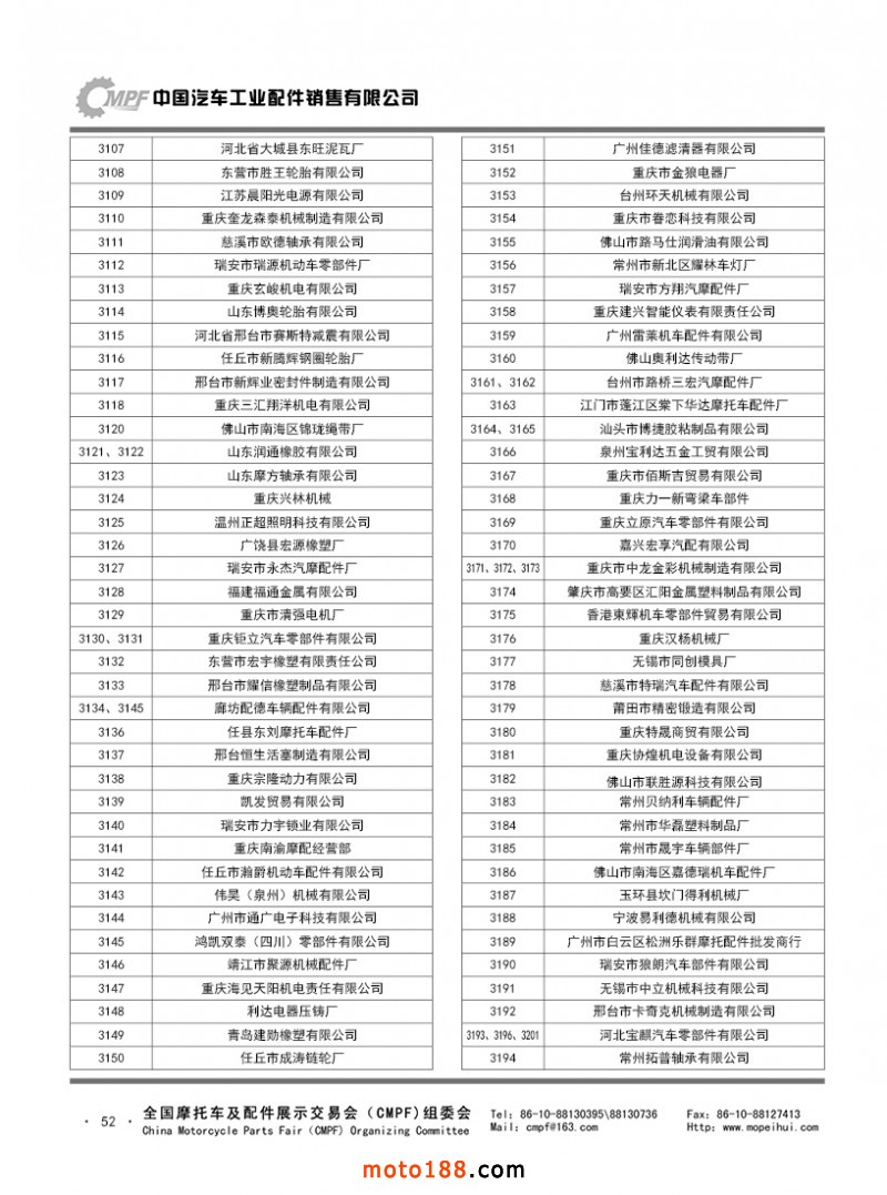 內(nèi)52 第74屆(2017秋)全國摩托車及配件展示交易會(huì)-廣州站參展單位名錄