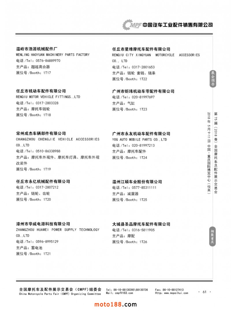 內61 第74屆(2017秋)全國摩托車及配件展示交易會-廣州站參展企業名錄