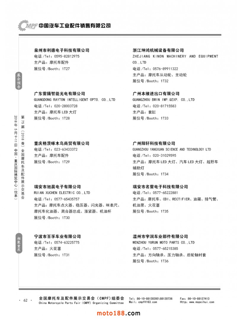 內62 第74屆(2017秋)全國摩托車及配件展示交易會-廣州站參展企業名錄
