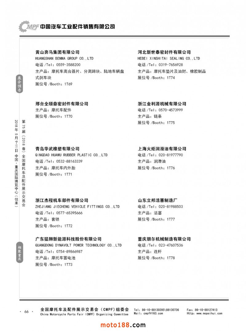 內(nèi)66 第74屆(2017秋)全國摩托車及配件展示交易會-廣州站參展企業(yè)名錄