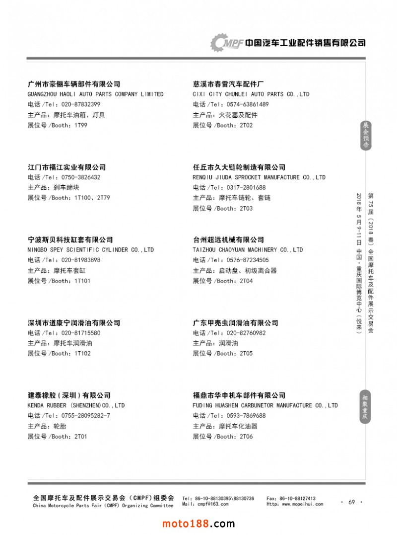 內(nèi)69 第74屆(2017秋)全國(guó)摩托車及配件展示交易會(huì)-廣州站參展企業(yè)名錄