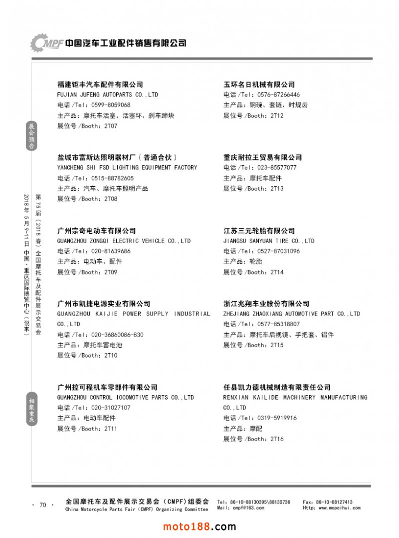 內70 第74屆(2017秋)全國摩托車及配件展示交易會-廣州站參展企業名錄