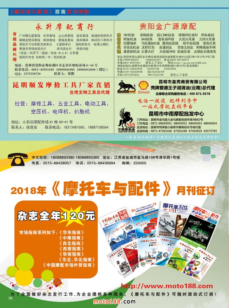 國內首本中英文雙語《中國摩配外貿市場指南》,為從事外貿的企業提供了工具。這本書在廣州秋季全摩會上首發。還將參加明年的江門和重慶春季全摩會。歡迎行業朋友帶上名片或者手機掃二維碼,到4079展位來領取《中國摩配外貿市場指南》和《摩托車與配件》11期雜志。