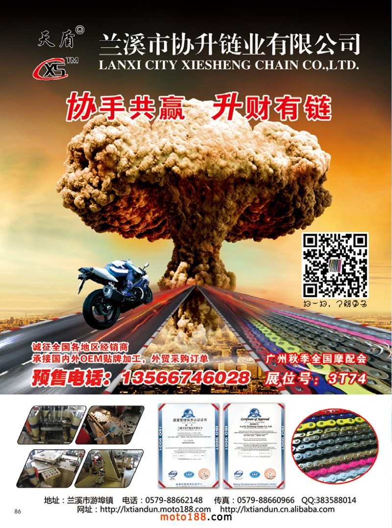 國(guó)內(nèi)首本中英文雙語《中國(guó)摩配外貿(mào)市場(chǎng)指南》,為從事外貿(mào)的企業(yè)提供了工具。這本書在廣州秋季全摩會(huì)上首發(fā)。還將參加明年的江門和重慶春季全摩會(huì)。歡迎行業(yè)朋友帶上名片或者手機(jī)掃二維碼,到4079展位來領(lǐng)取《中國(guó)摩配外貿(mào)市場(chǎng)指南》和《摩托車與配件》11期雜志。
