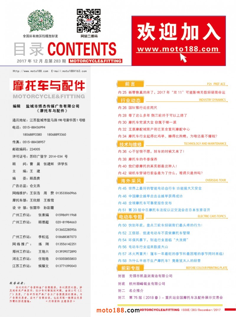 2017.12月《摩托車/電動車與配件》雜志,歡迎大家閱讀