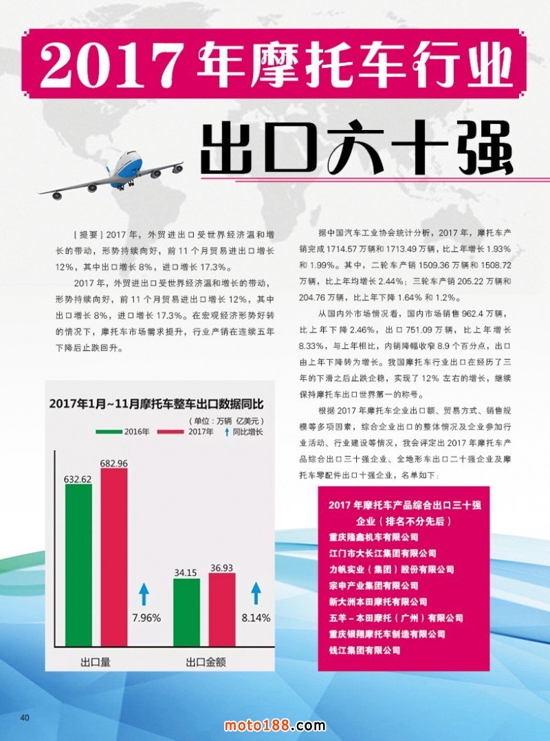 內40 2017年摩托車行業出口六十強企業名單發布!