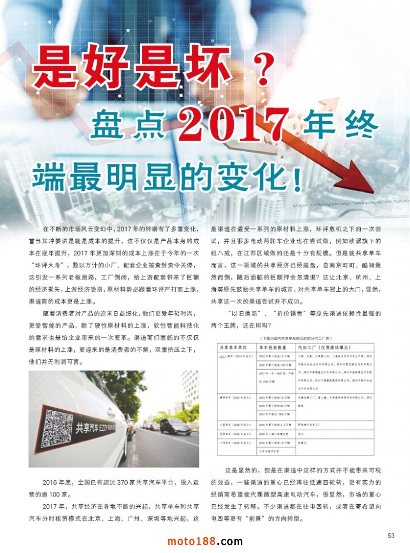 《摩托車與配件》傳統媒體與新媒體的結合,以及我們腳踏實地的工作。這一年多來,雜志已經華麗的轉身,并且拓展出新的發展空間,可為摩配行業企業提供更多的服務形式。目前我們己基本將全行業的從業人員加為微信好友,為國內外貿企業建了四個群,同時又建國內五大市場群,方便了業務開展和企業互動;完成了對全國市場的新一輪的走訪,對國內摩配市場有了一個全面的準確的認識;完成了對目前現有摩配生產廠家的資料更新。2017我們蓄勢待發,2018我們揚帆起航!