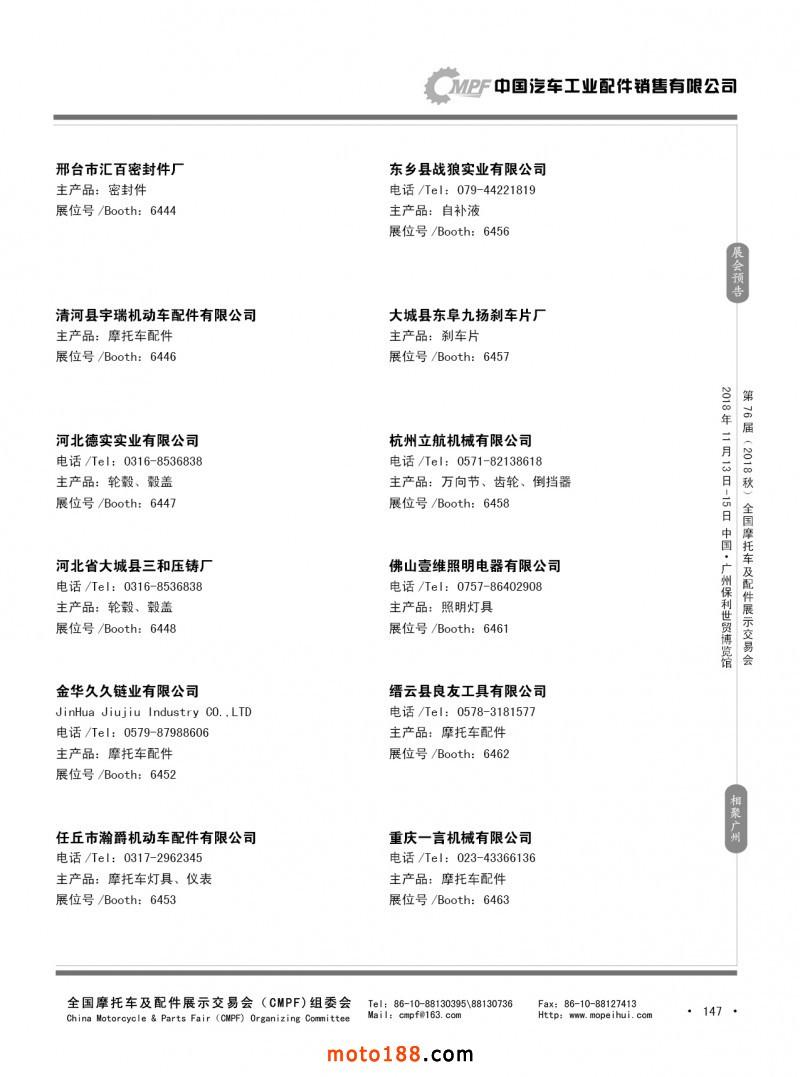 內147 第75屆(2018春)全國摩托車及配件展示交易會-重慶站參展企業信息